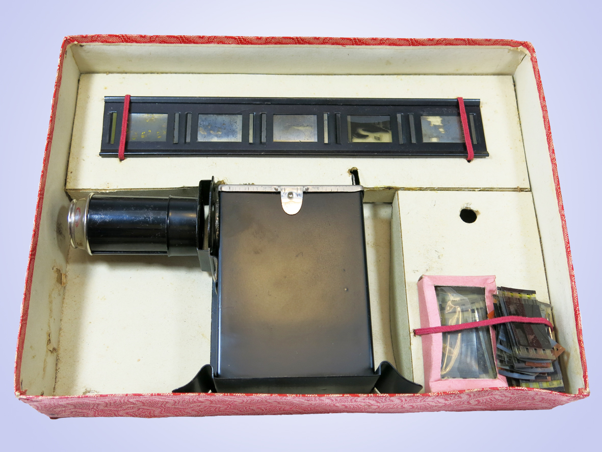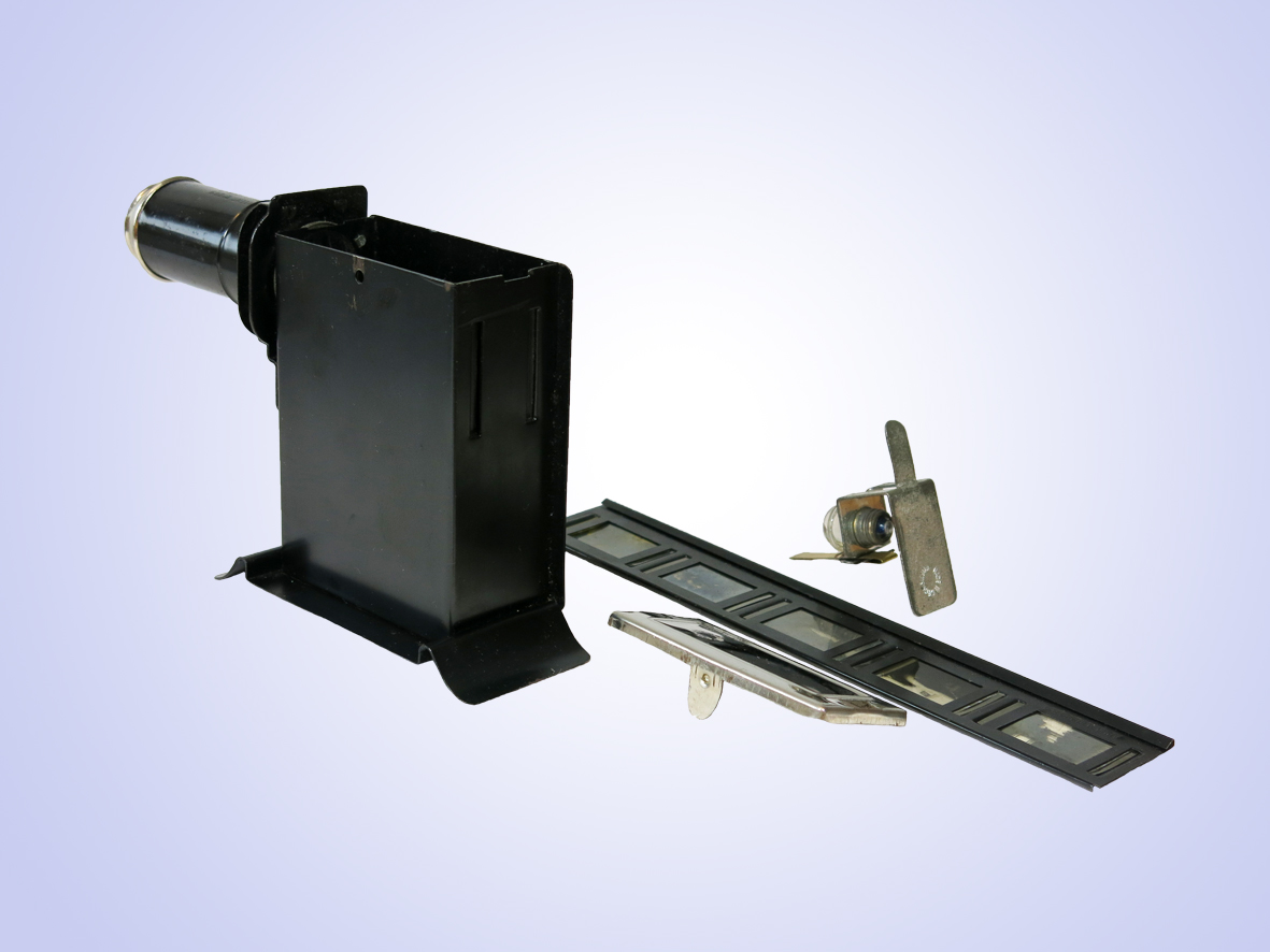 Laterna Magica für Glasbildstreifen 35mm einschl. Einsatz für 35mm Filmzellen