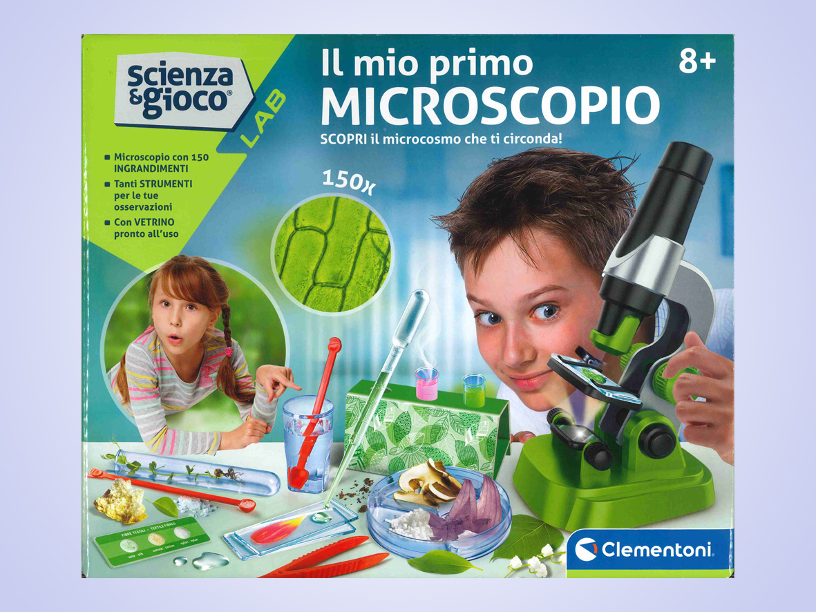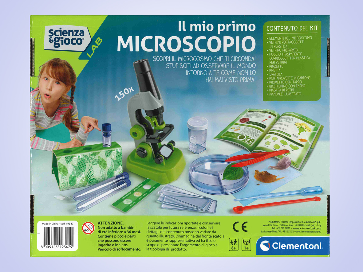 Italienische Version, sehr einfaches, aber funktionsfähiges Mikroskop