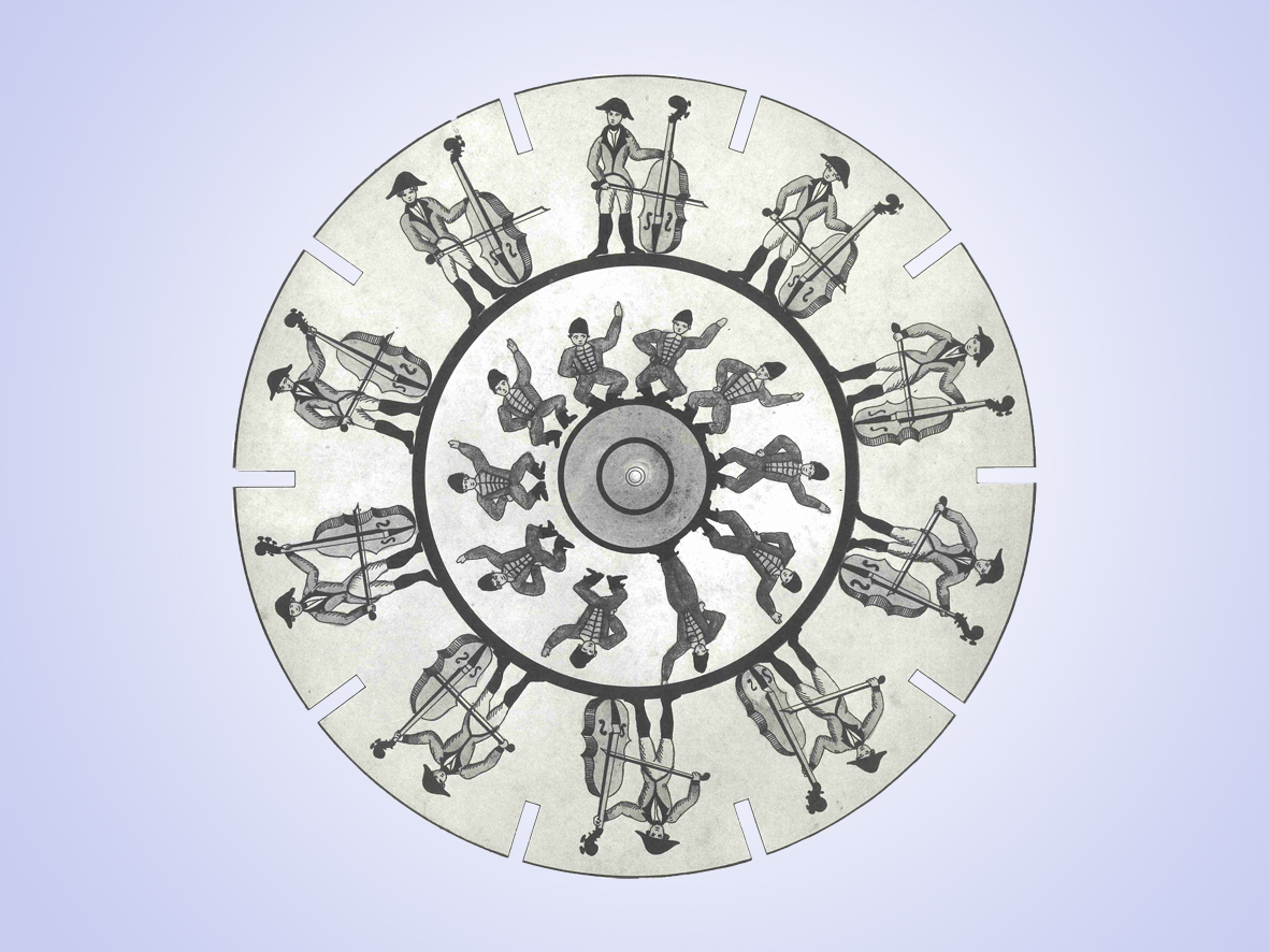 Reproduktion eines Phenakistiskopes mit Verwendung eines Spiegels.