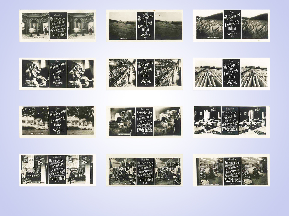Einschl. original 40 Stereokarten zum Thema „Leinenherstellung“