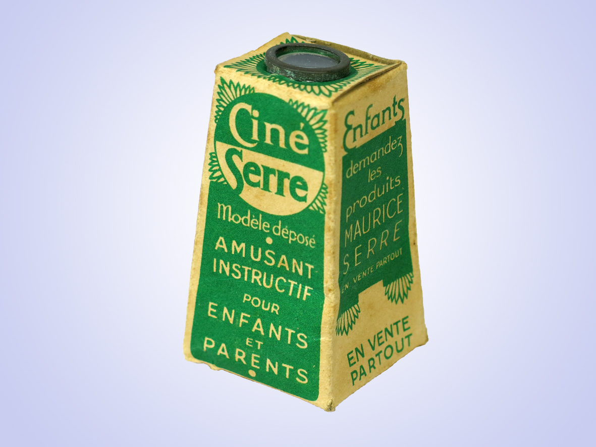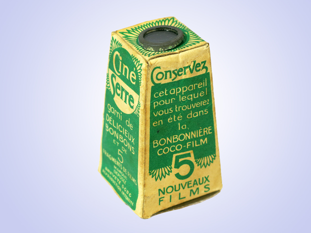 Vermutlich handelt es sich um einen Werbebetrachter. Bei Kauf von Bonbons der Marke Serre hat man 5* 35mm Filmzellen als Zugabe erhalten, Möglicherweise gab es auch eine Bonbonniere von Serre mit dem Namen COCO-FILM, wo die Filmzellen beigefügt waren.