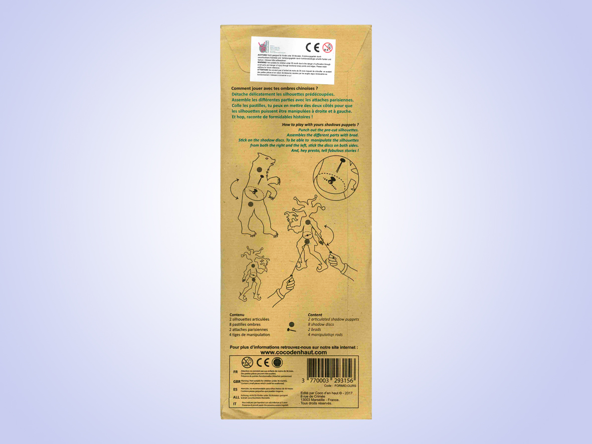Bestehend aus: 2 Schattenfiguren, 2 Stäbe zum Bewegen der Figuren