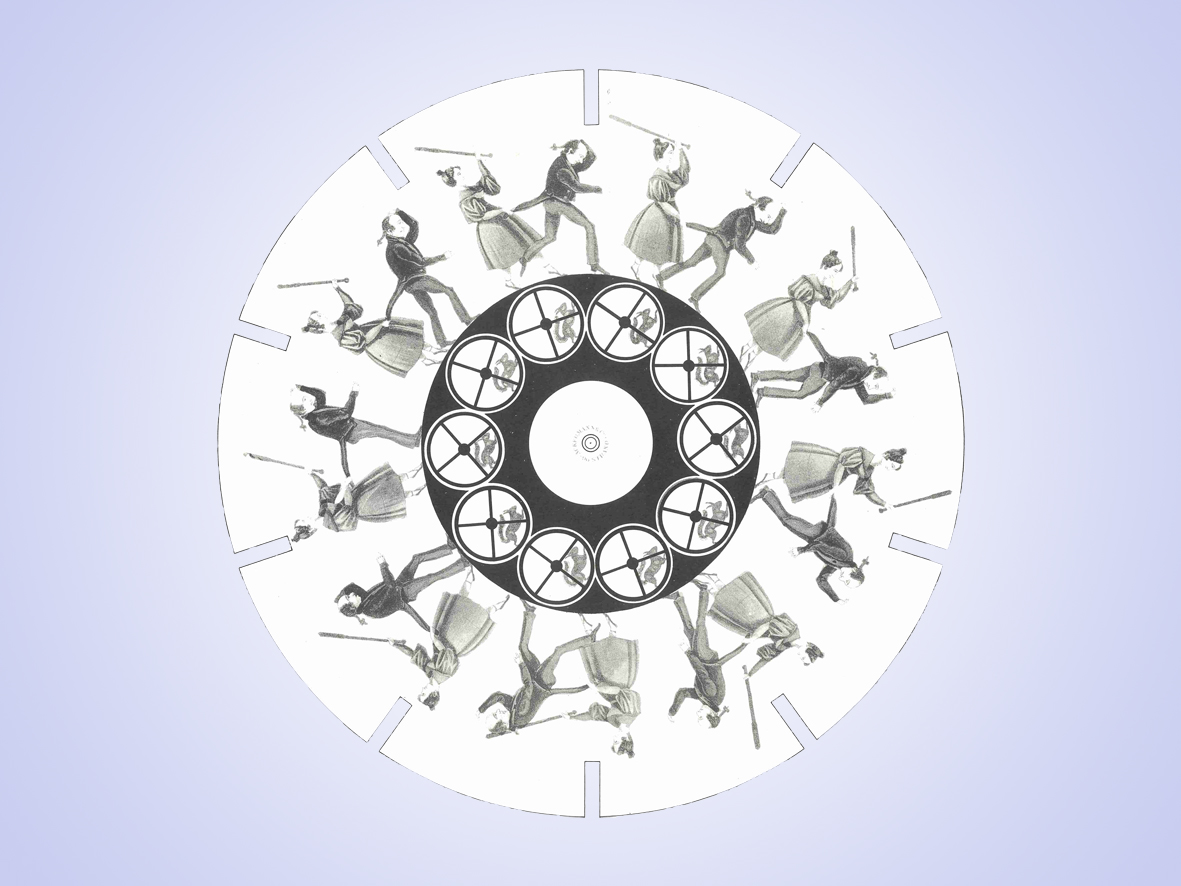 Reproduktion eines Phenakistiskopes mit Verwendung eines Spiegels.