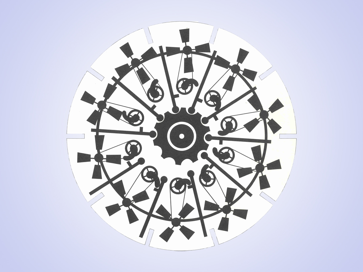 Einschl. 7 austauschbare bedruckte Bildscheiben (zwei davon doppelt) und einer schwarzen Grundscheibe.