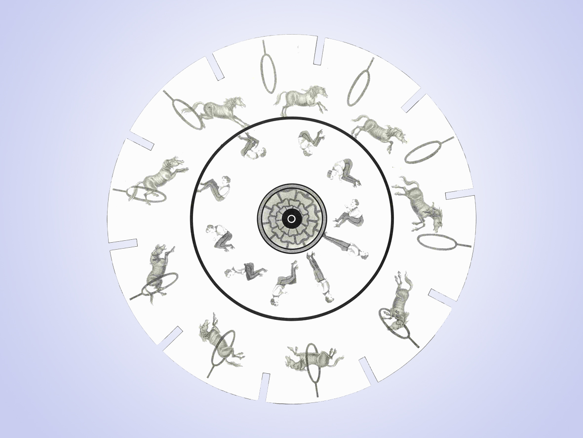 Der Bewegungseindruck entsteht dadurch, dass die Schlitze den Blick auf den Spiegel immer gerade dann freigeben, wenn gerade ein neues Bild im Spiegel an die Position des Vorherigen getreten ist. Dieser Eindruck beruht auf dem Prinzip der Nachbildwirkung.