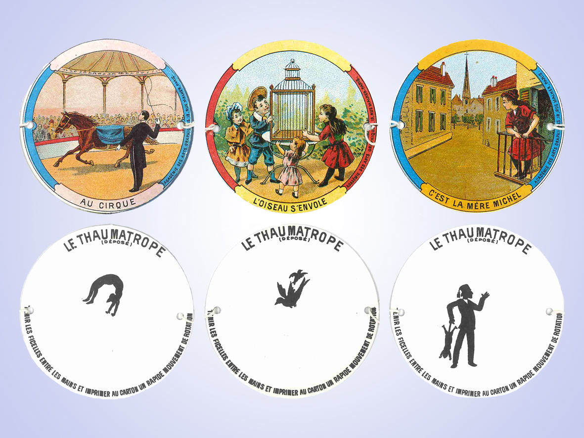 4 Thaumatrope, davon eines zum Selbstgestalten