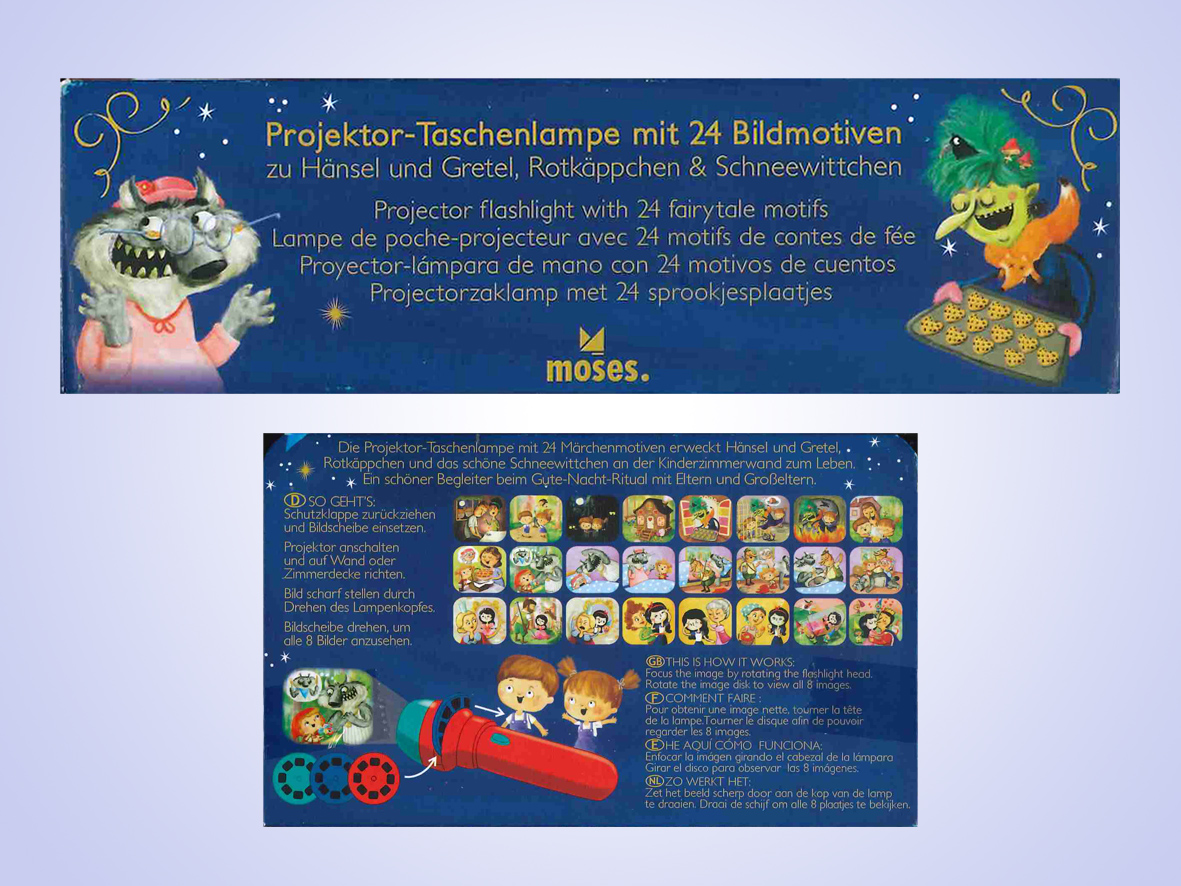 Taschenlampe mit 3 wechselbaren runden Einsätzen für Projektion
