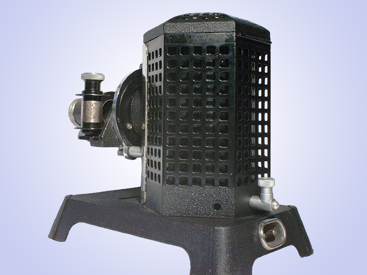 Projektor für 35 mm- RollfilmeAntrieb über manuelles Drehen der Filmrollen