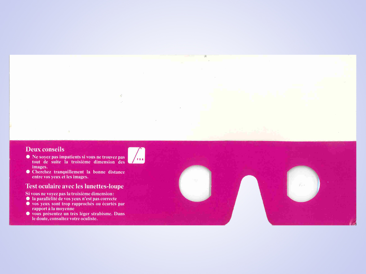 Einschl. einer gefalteten und beidseitig bedruckten Beschreibung über 3-dimensionales Sehen mit 8 Stereobildern.