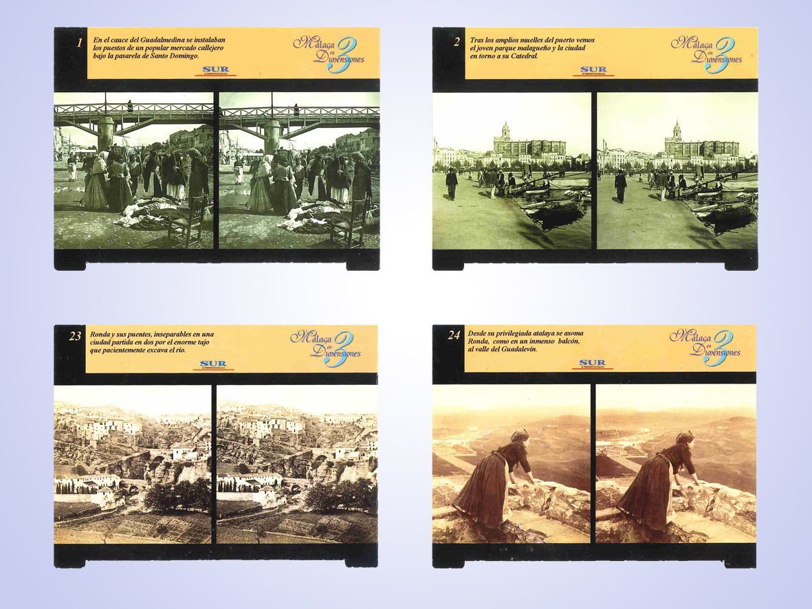 Vermutlich ein Werbegeschenk von Diario SUR, vermutlich über 76 verschiedenen Stereokarten, diese wurden mit einer Perforation herausgetrennt (mehrere Stereokarten zusammengeliefert), gute Stereoqualität