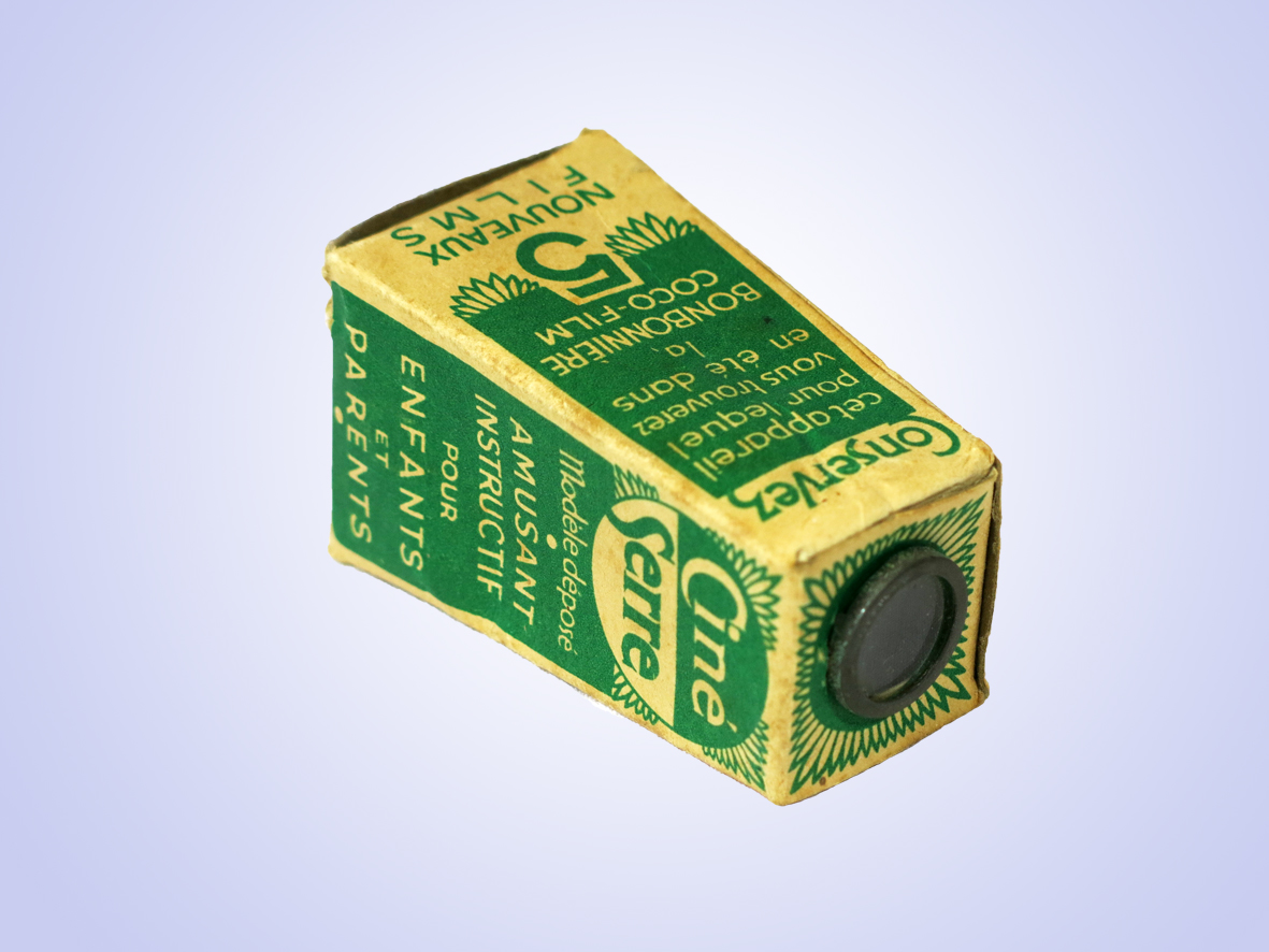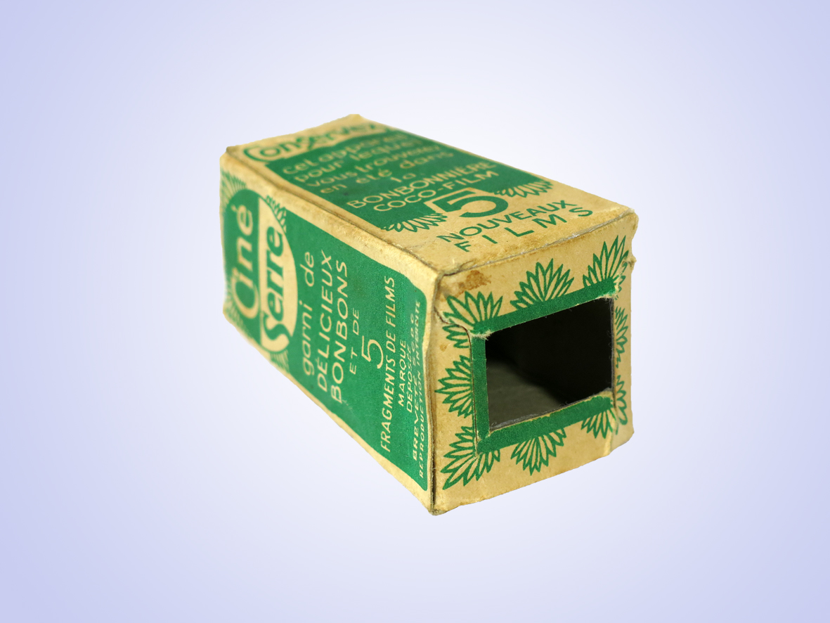 Vermutlich handelt es sich um einen Werbebetrachter. Bei Kauf von Bonbons der Marke Serre hat man 5* 35mm Filmzellen als Zugabe erhalten, Möglicherweise gab es auch eine Bonbonniere von Serre mit dem Namen COCO-FILM, wo die Filmzellen beigefügt waren.